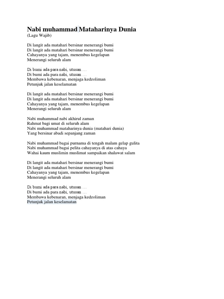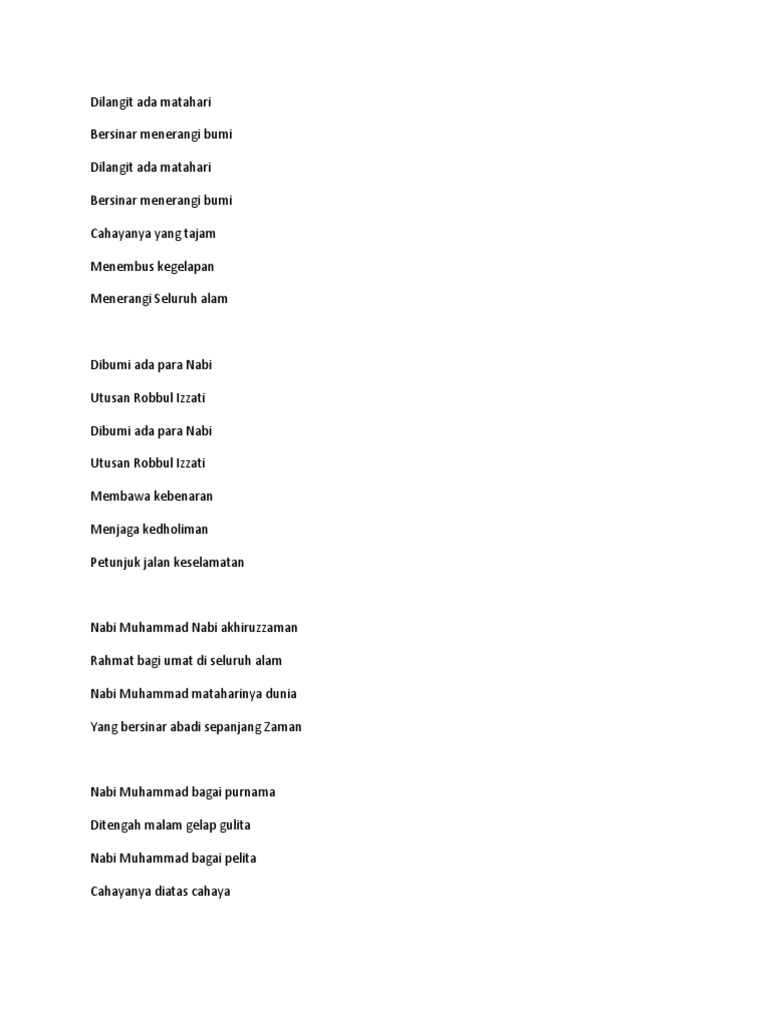 Lirik Lagu Khasidah Mataraharinya Dunia Nasidaria Dara Co Id